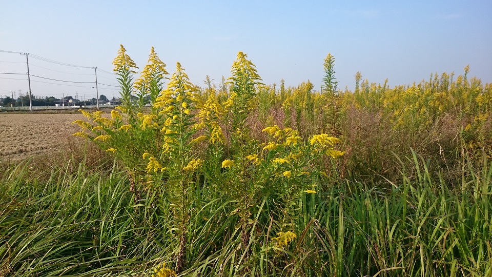 近所の耕作放棄地にセイタカアワダチソウがたくさん生えていました。