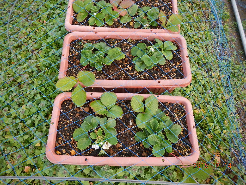 露地のプランターで育てているいちご苗が紅葉してきました。